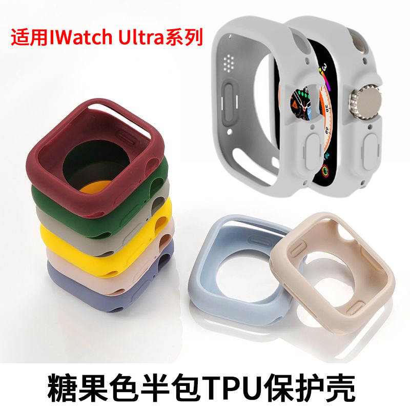 工厂直销苹果Watch4/5/67代磨砂TPU半包手表保护套apple watch7手表壳。
