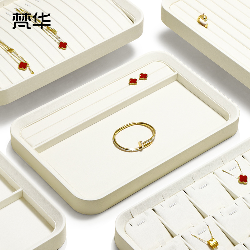 工厂直供珠宝首饰展示托盘简约饰品收纳盘皮革项链戒指手镯陈列盘