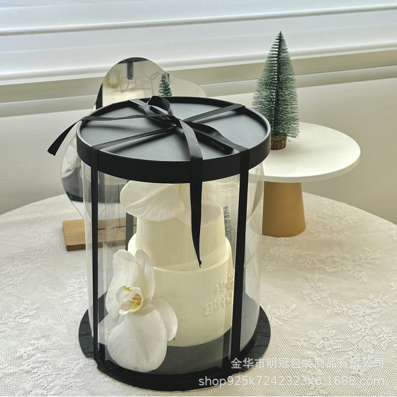 円形ケーキ箱透明4/6インチ8インチ10インチ12インチ高ネット赤誕生日ケーキ箱包装箱包郵便