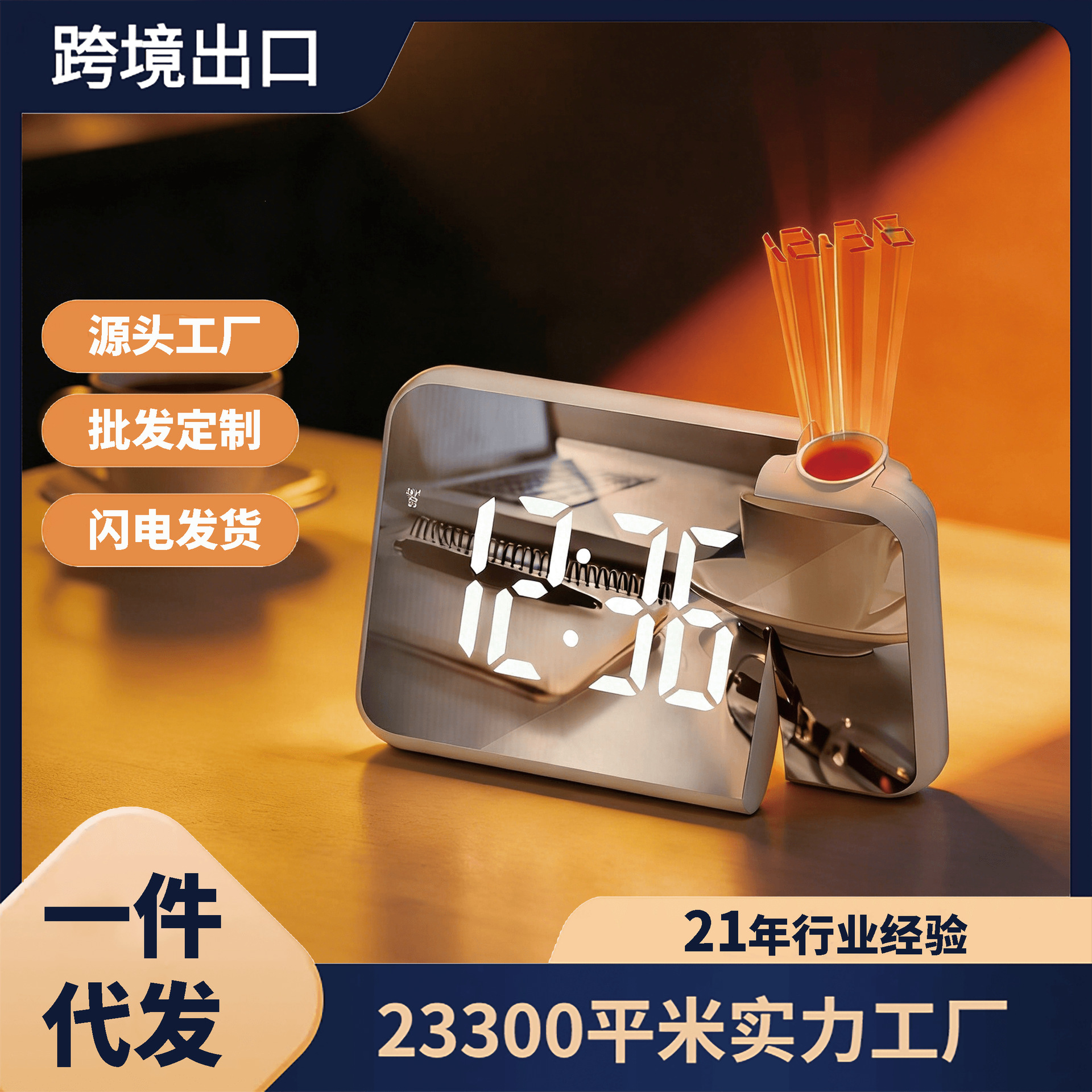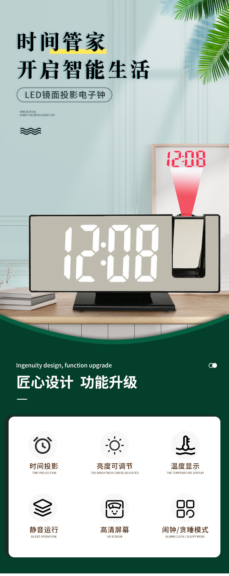 クロスボーダー投影時計 学生用電子時計 LED大画面デスクトップクリエイティブ目覚まし時計 ミラーデジタルスマート目覚まし時計