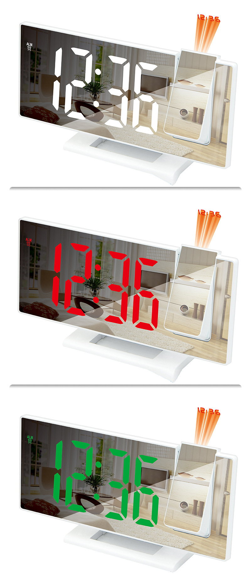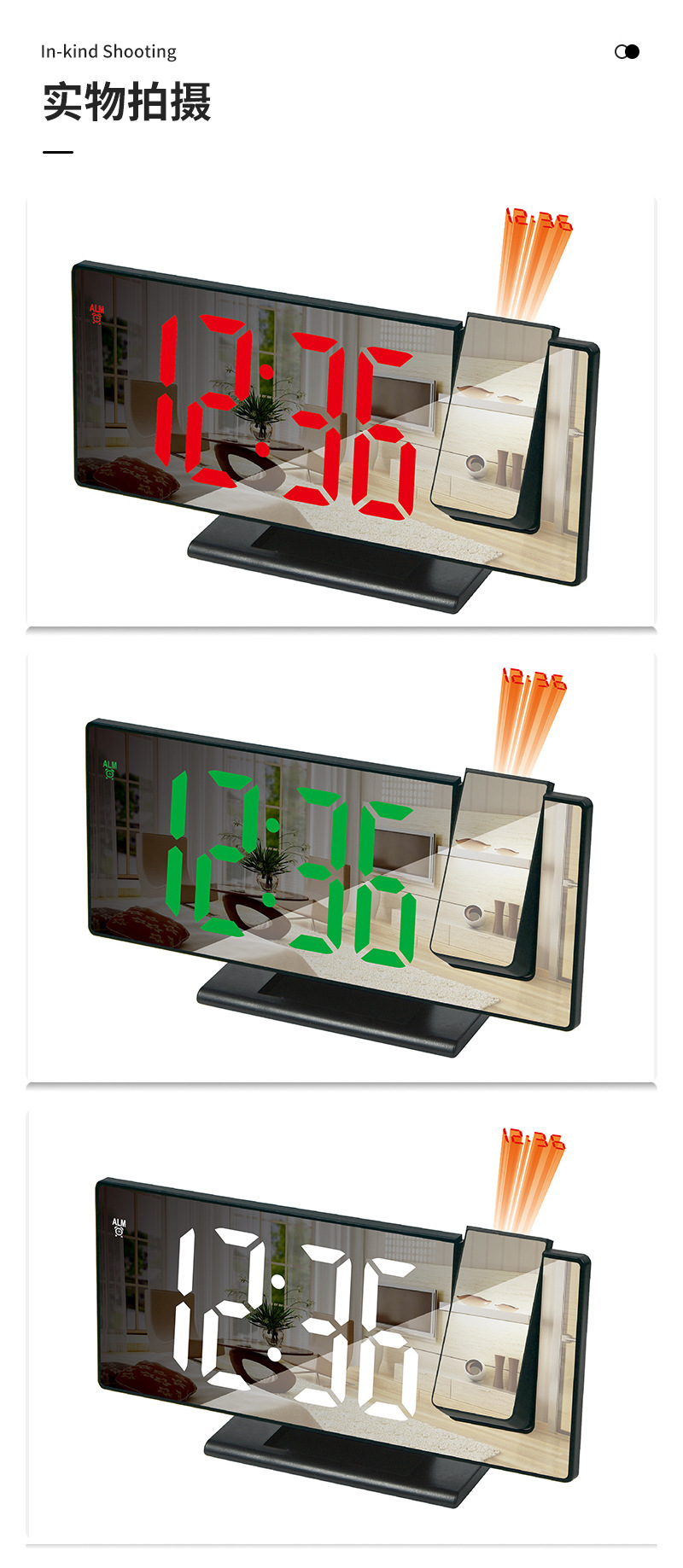 新型デジタル投影表カラーフィルム創意シンプル夜光鏡面投影目覚まし時計led大画面プラスチック電子時計