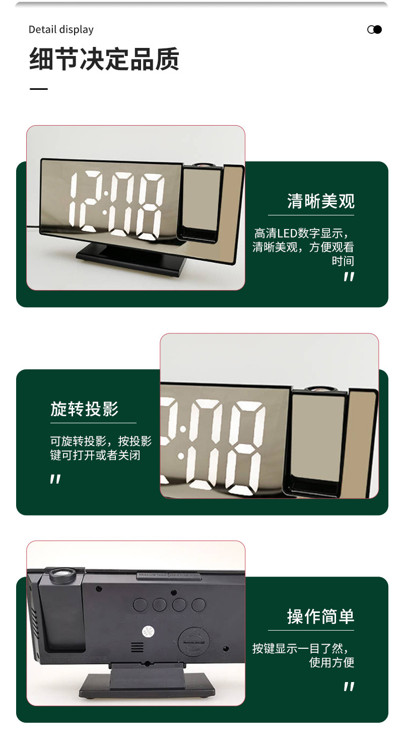 新型led投影時計多機能デジタル目覚まし時計自動感光電子時計usb接続クロスボーダー
