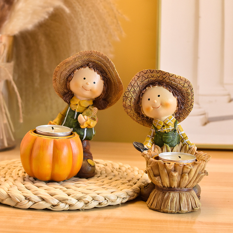 跨境热销丰收南瓜男孩女孩雕像树脂摆件家居玄关电视柜装饰品礼物