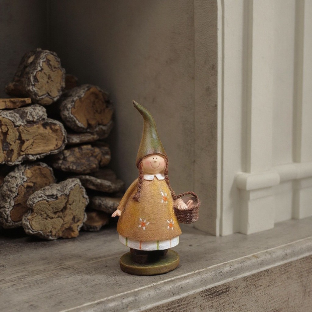 油絵スタイルのバスケットの花のスカートの尖った帽子の森の女の子の樹脂の装飾の置物の恋人の贈り物の卒業シーズンのプレゼント