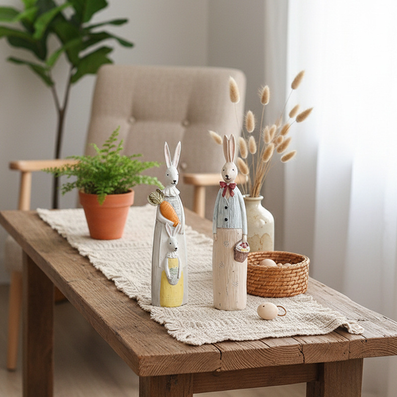 レジンウサギ女の子置物オフィスリビング玄関レジン工芸品生け花器クリエイティブホームアクセサリー置物