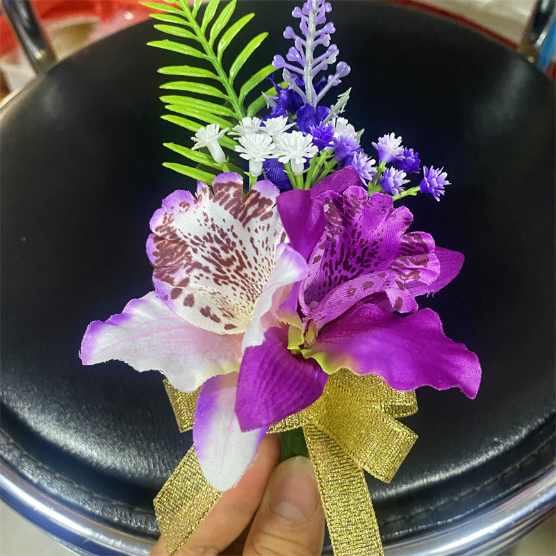此款兰花胸花较大气适合用公司年会商务会议开业活动剪彩礼仪同乡会贵宾嘉宾胸花