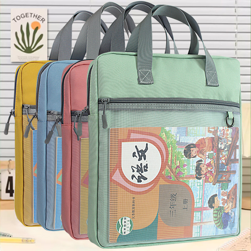 科目分类ファイルバッグ厚手防水オックスフォードモランディ色大容量ジッパー作业袋学生塾バッグ