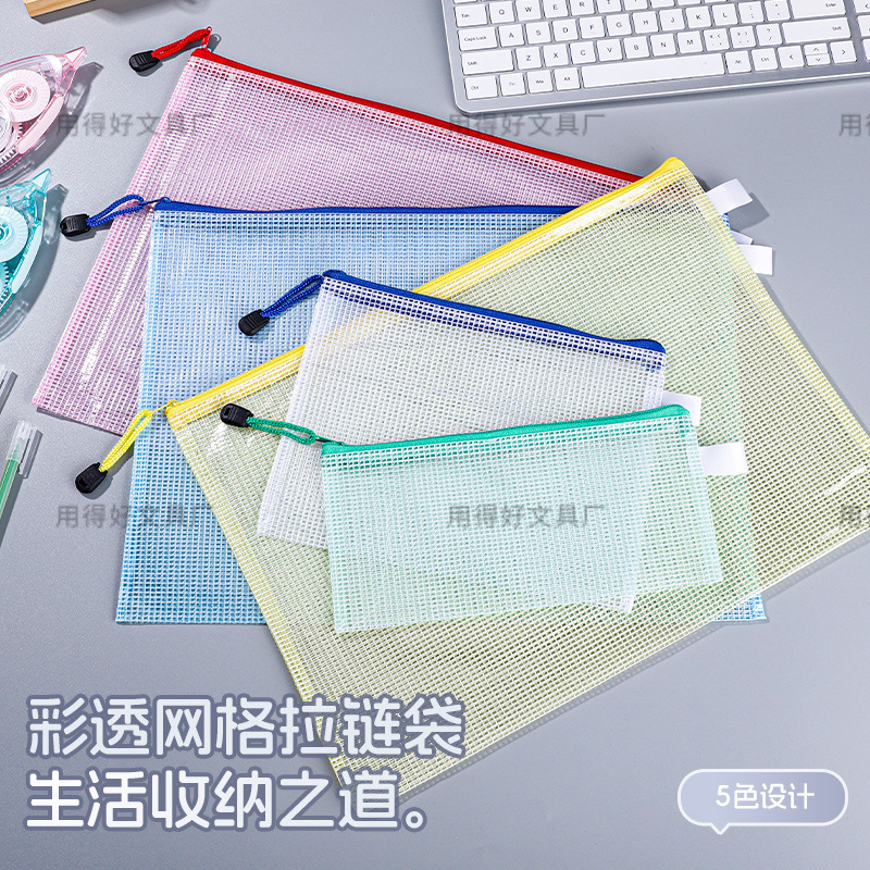 A4 オフィス ファイル ジッパー バッグ透明メッシュ PVC ジッパー バッグの国境を越えた供給