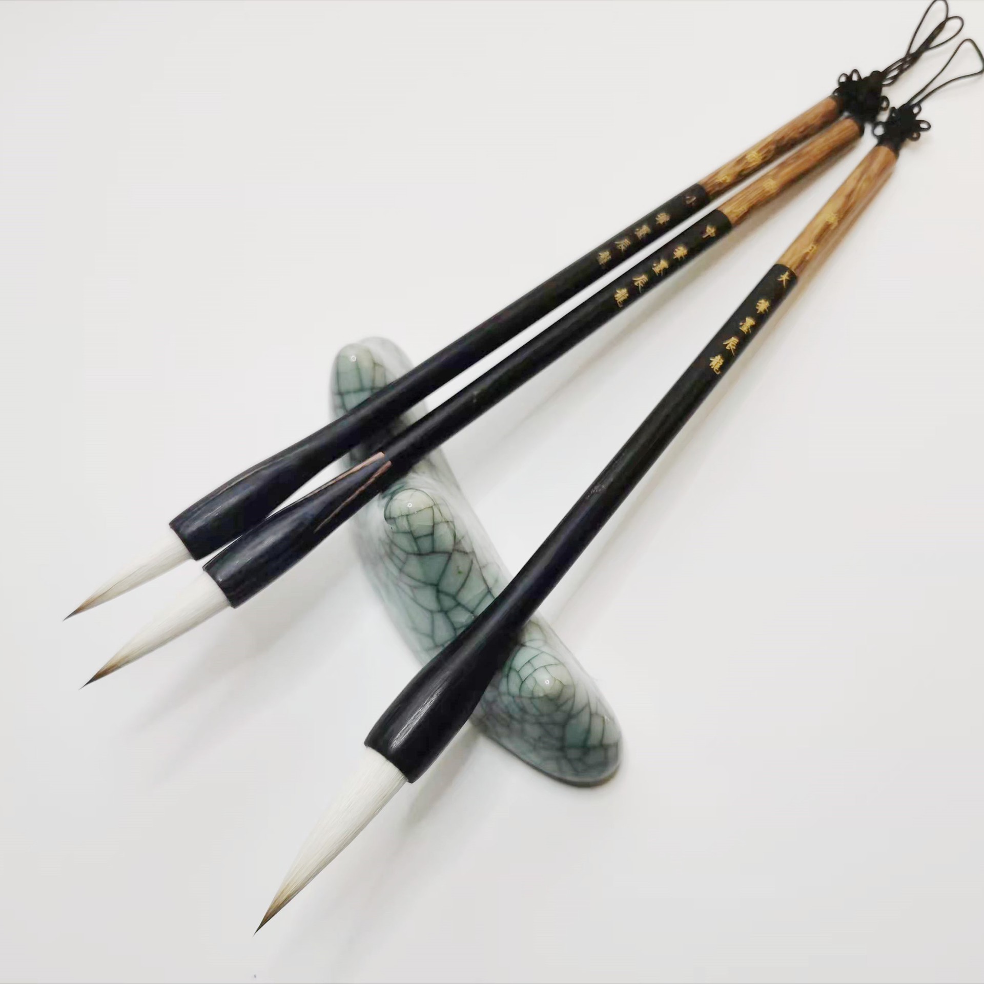 辰龍牌幽人酔月震音火山高品兼ミリ毛筆大中小レイシ木は黒檀木の筆棒をはめ込んでいます。