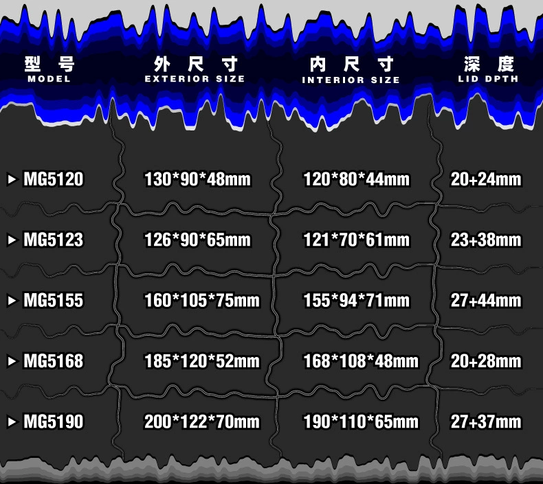 外寸 130x90x48mm 内寸 120x80x44mm※ブラックボックス,外寸 130x90x48mm 内寸 120x80x44mm※カーキボックス,外寸 126x90x65mm 内寸 121x70x61mm※ブラックボックス,外寸 126x90x65mm 内寸 121x70x61mm※カーキボックス,外寸 160x105x75mm 内寸 155x94x71mm※ブラックボックス,外寸 160x105x75mm 内寸 155x94x71mm※カーキボックス,外寸 185x120x52mm 内寸 168x108x48mm※ブラックボックス,外寸 185x120x52mm 内寸 168x108x48mm※カーキボックス,外寸 200x122x70mm 内寸 190x110x65mm※ブラックボックス,外寸 200x122x70mm 内寸 190x110x65mm※カーキボックス