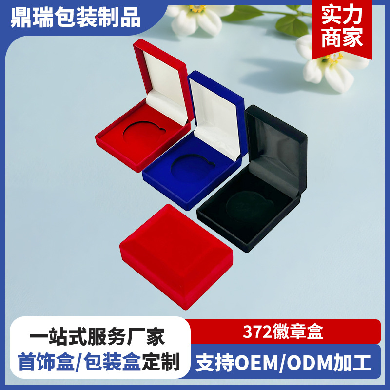 厂家批发植绒校徽班徽胸章针奖牌勋章包装礼品首饰徽章盒首饰盒