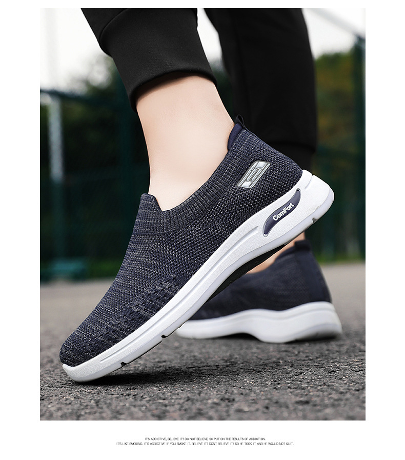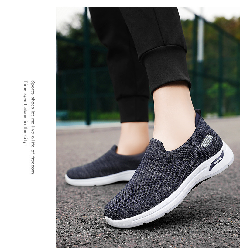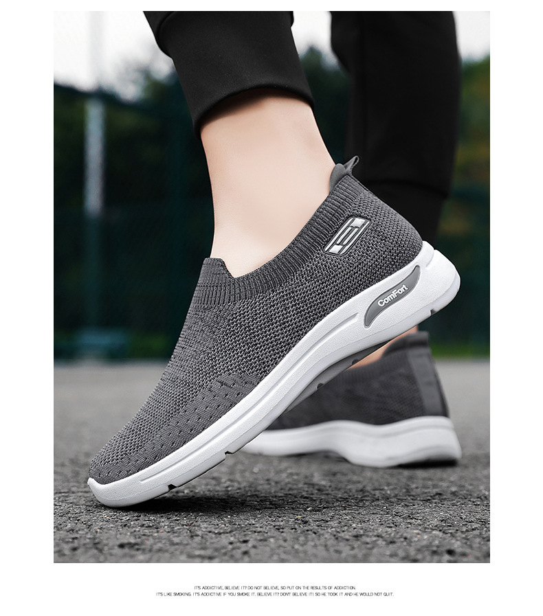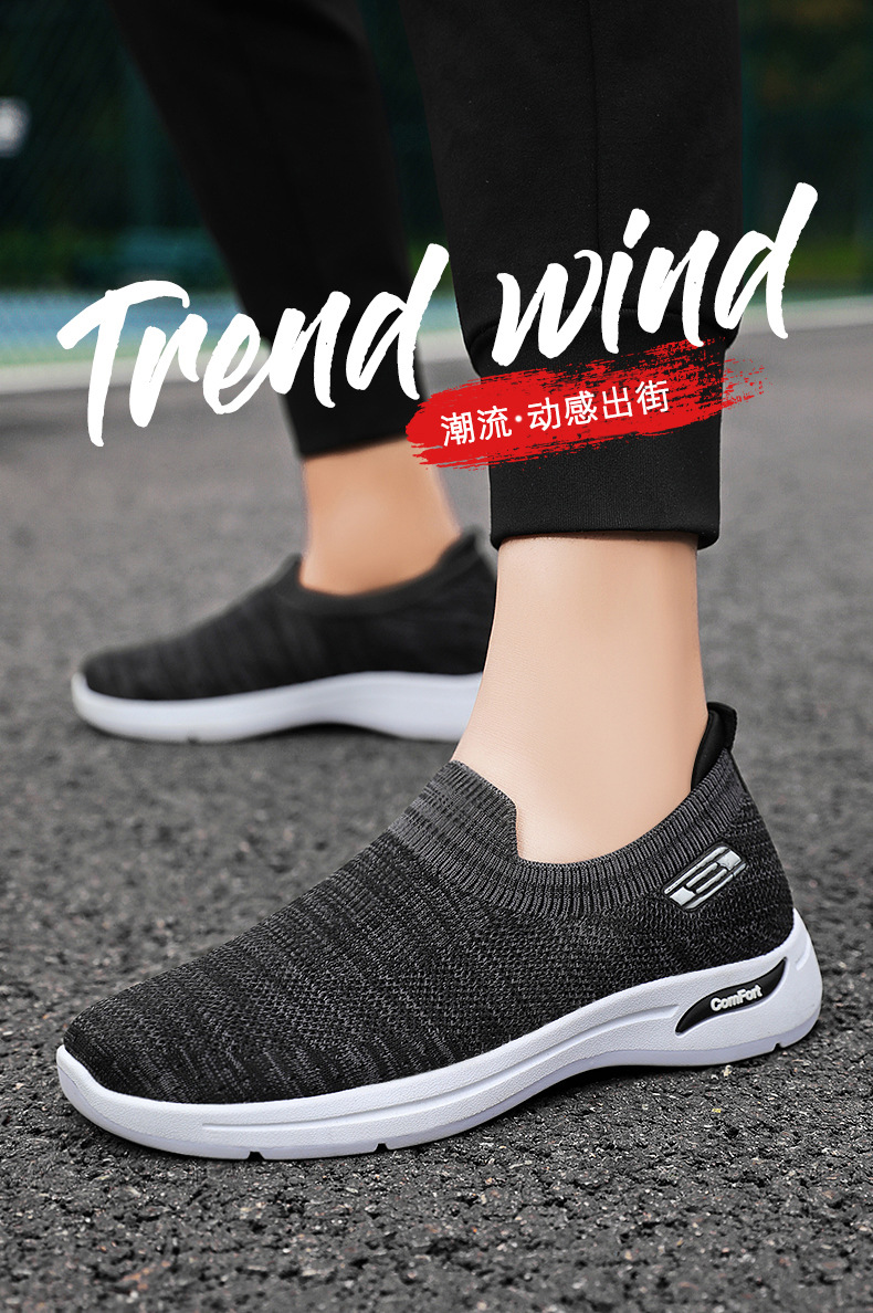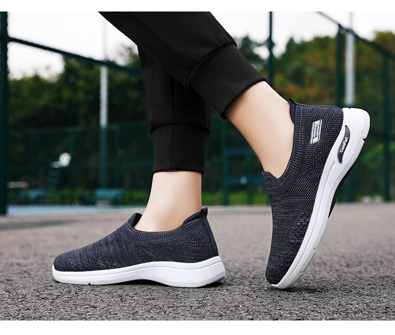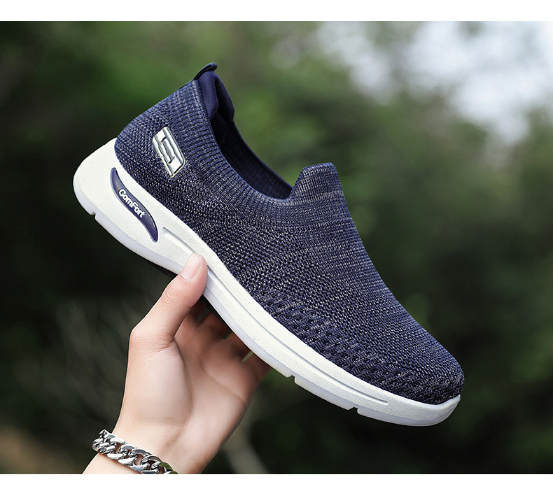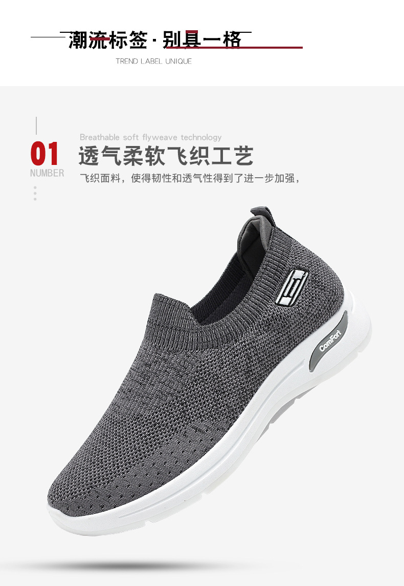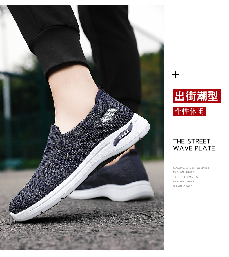 メンズ秋の新作卸売カジュアルシューズ、通気性のあるメッシュシューズ、フライニット老北京布靴、スリッポン、お父さん靴