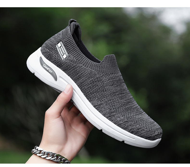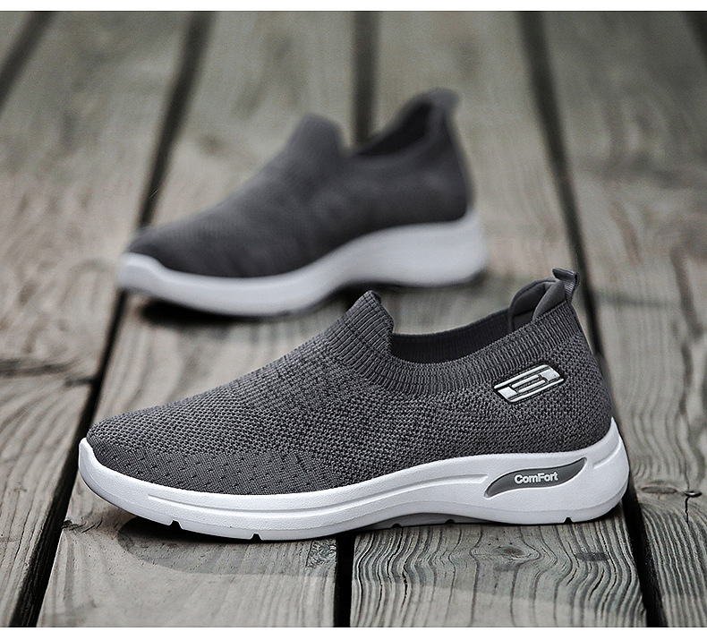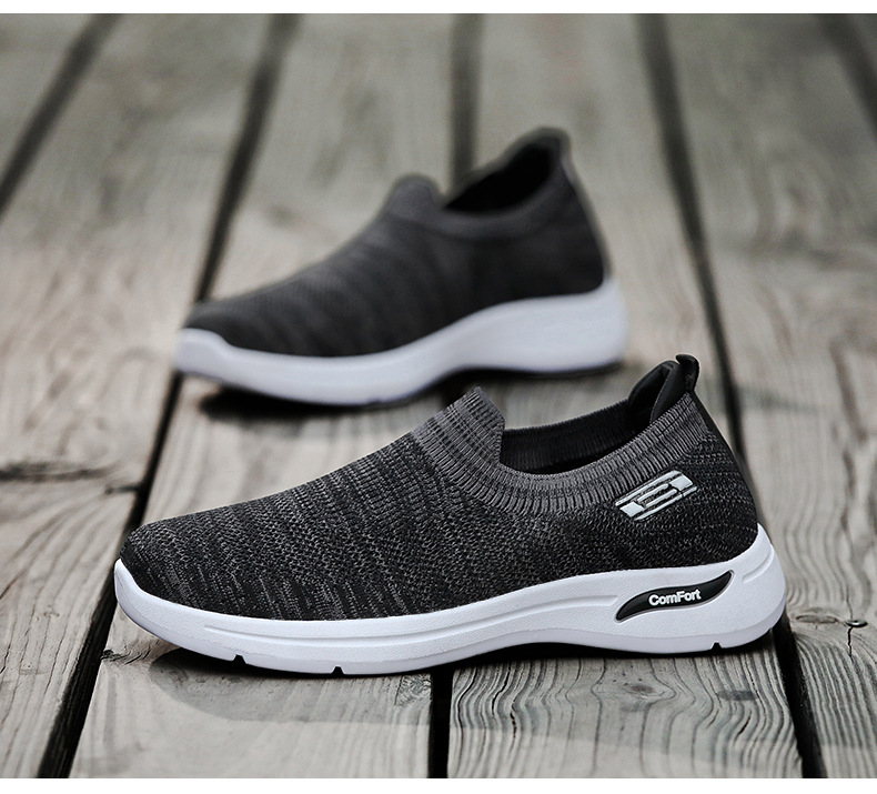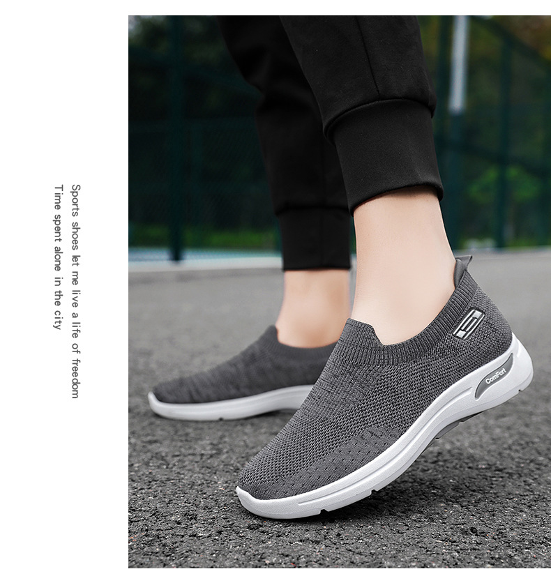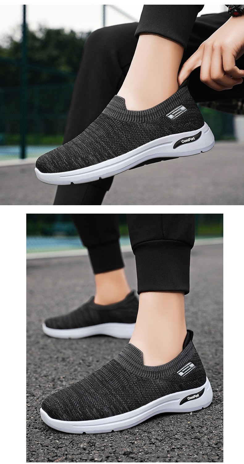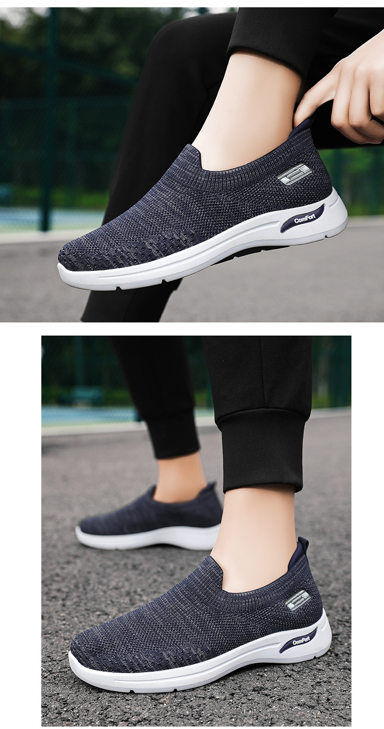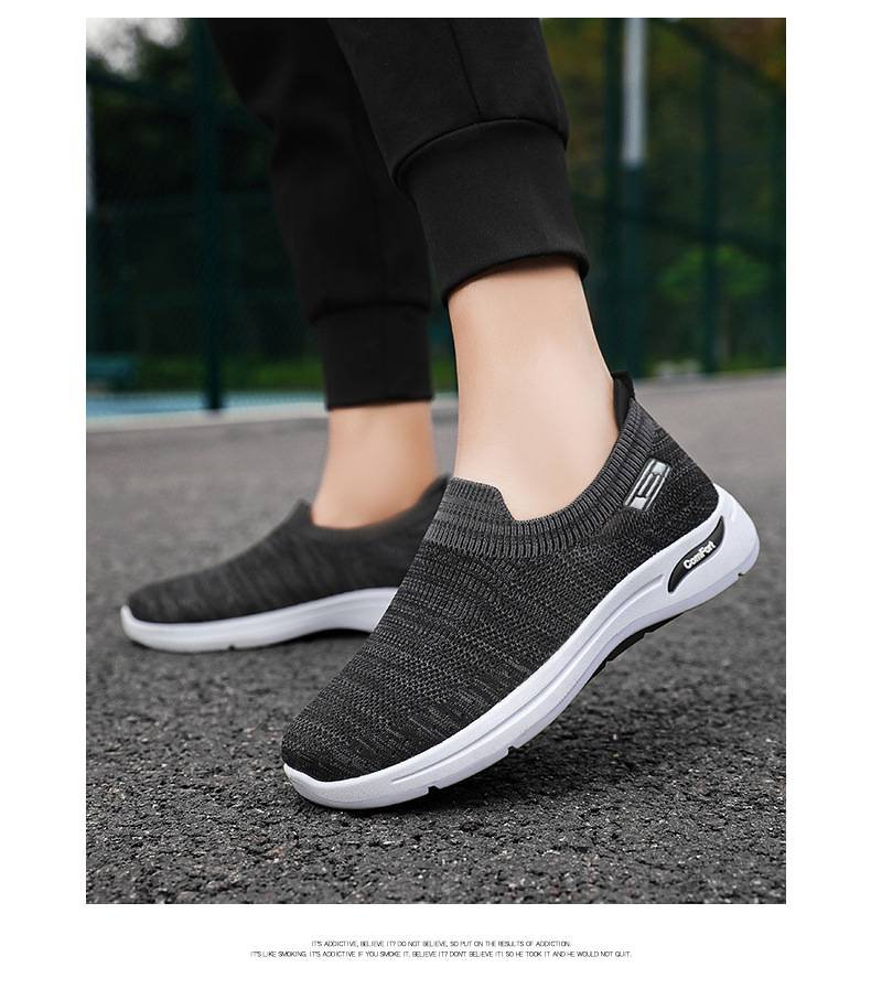メンズ秋の新作卸売カジュアルシューズ、通気性のあるメッシュシューズ、フライニット老北京布靴、スリッポン、お父さん靴