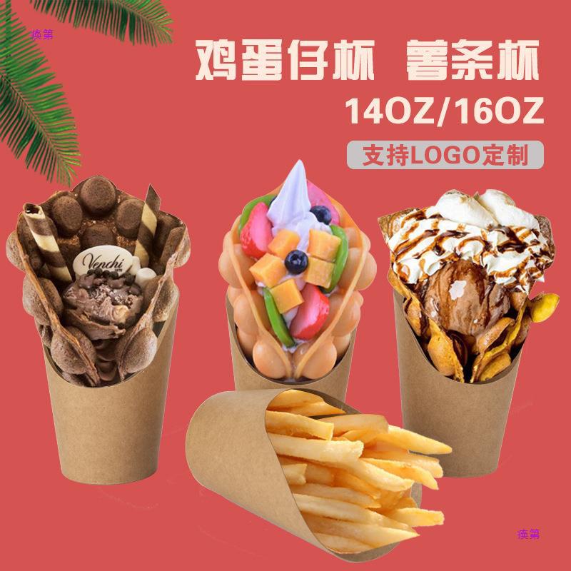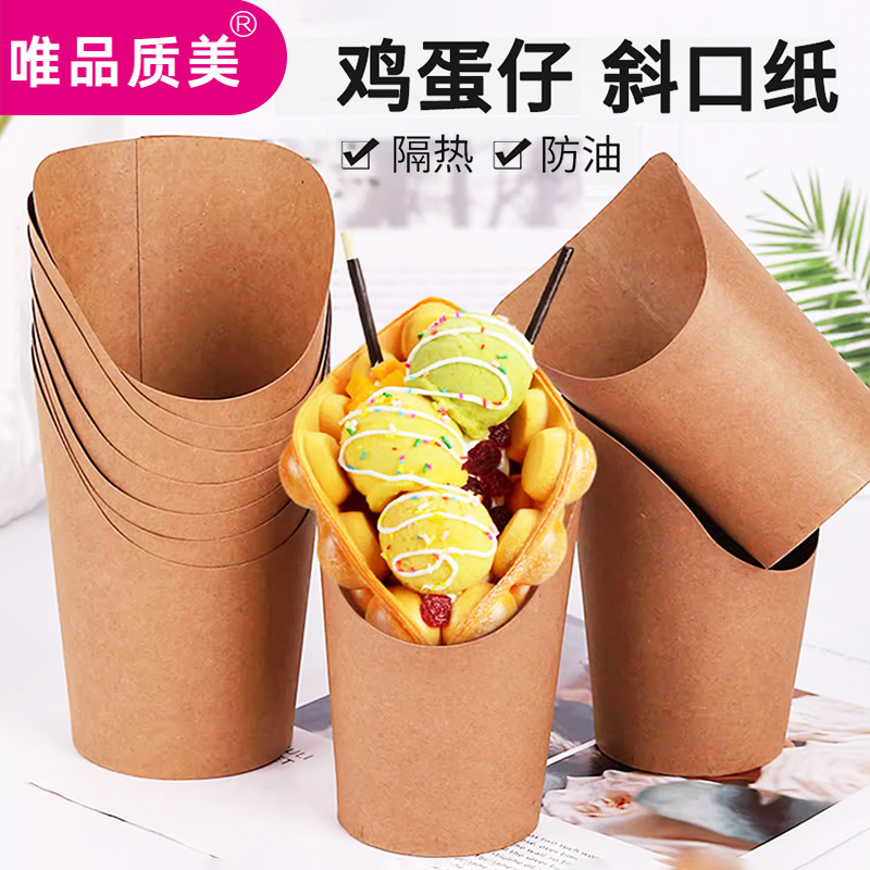 鸡蛋仔纸杯一次性外卖薯条杯冰淇淋杯牛皮纸斜口杯圆筒小吃杯