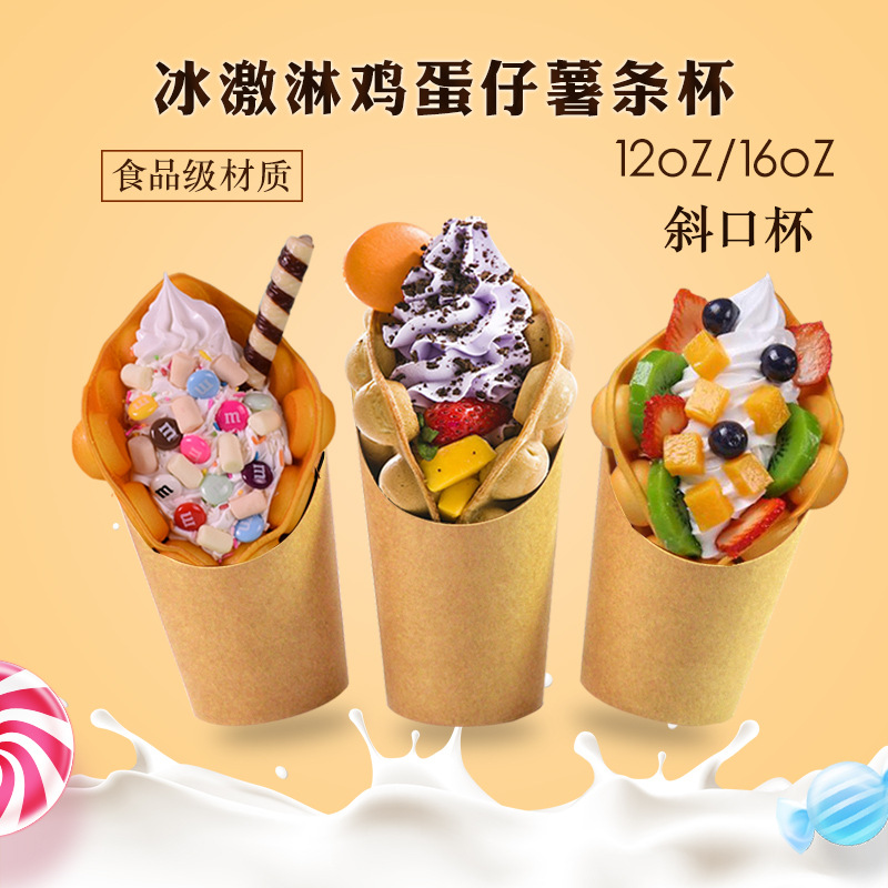 12oz冰淇淋一次性鸡蛋仔薯条纸杯斜口牛皮纸杯蛋仔纸杯 蛋仔纸杯
