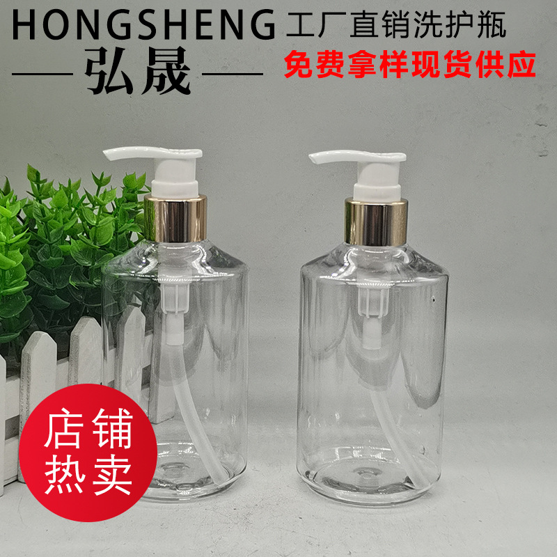 卸売り500ml入浴露瓶petプラスチック透色乳液押え瓶斜肩シャンプー瓶シャンプー露瓶