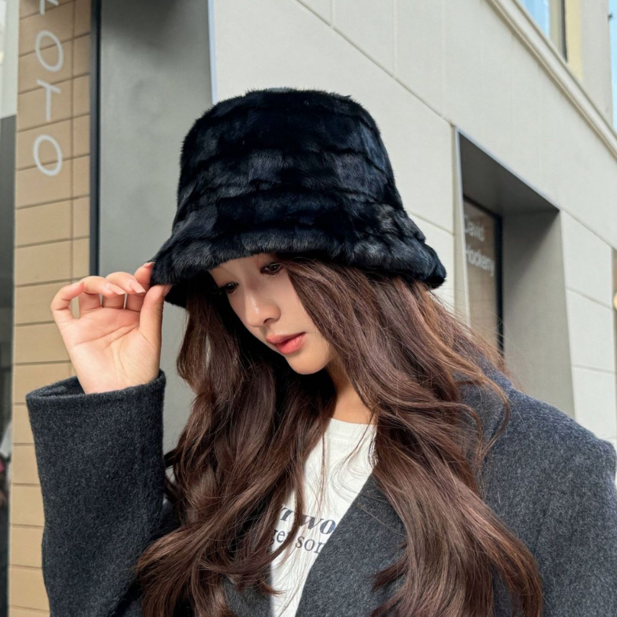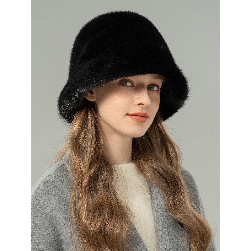 冬季水貂毛帽子女韩版保暖整貂皮草帽时尚百搭渔夫帽气质水桶盆帽