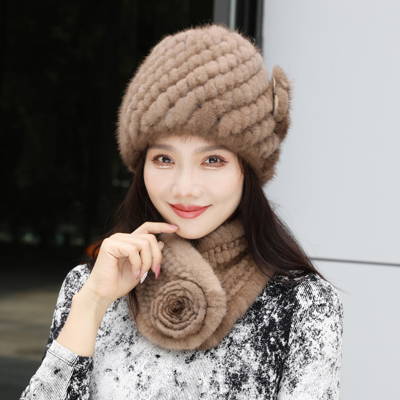 ミンクの毛皮の帽子の女性の秋冬の新型のかわいい少女のミンクの総合的な組み合わせの保温の冬の屋外のスキーの帽子