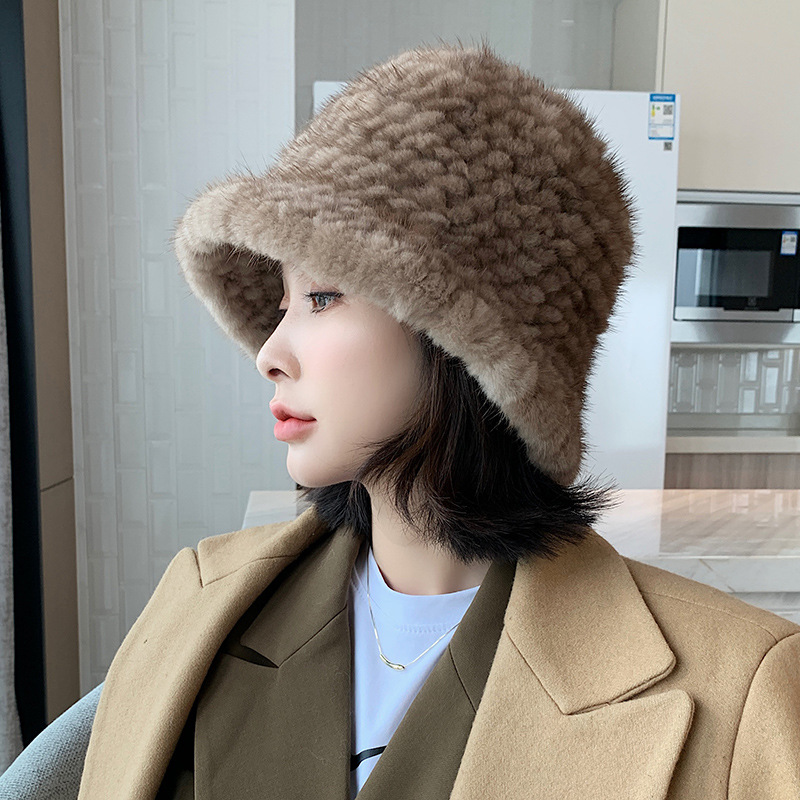 秋冬季女士新款气质水貂毛编织小礼帽加厚保暖渔夫盆帽百搭皮草帽