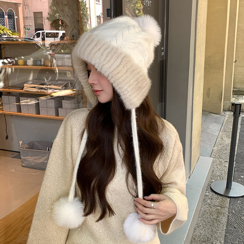 冬季新款狐狸毛球水貂帽子保暖女护耳显脸小防寒加厚毛绒帽子风雪