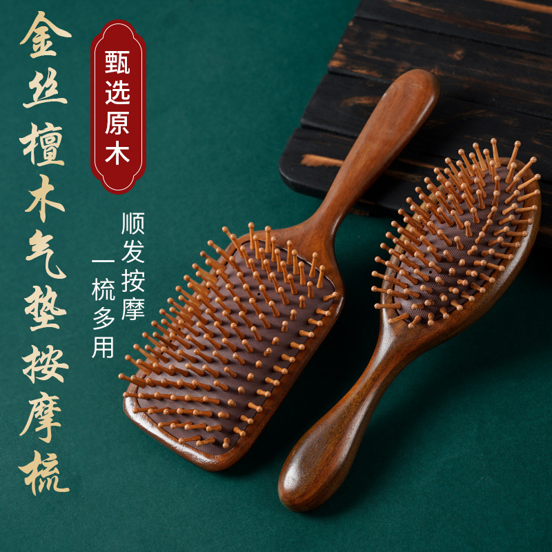 檀木气垫气囊梳刻字打字按摩头皮经络梳头部金丝梳头护发护发神器