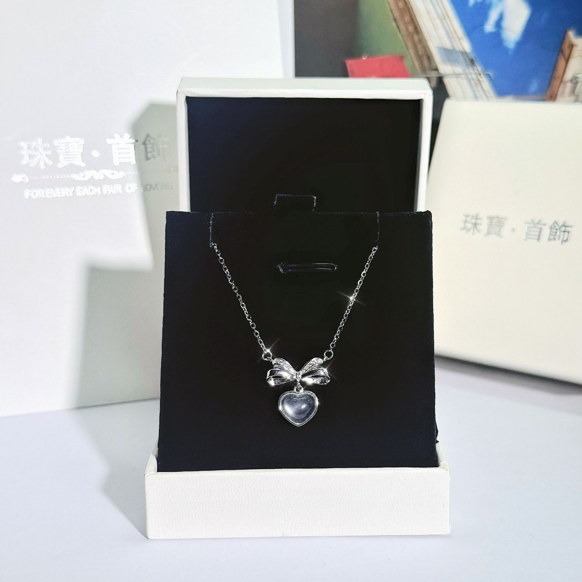 原创小众高级感S925纯银蝴蝶结项链女甜美百搭爱心天然水沫玉吊坠