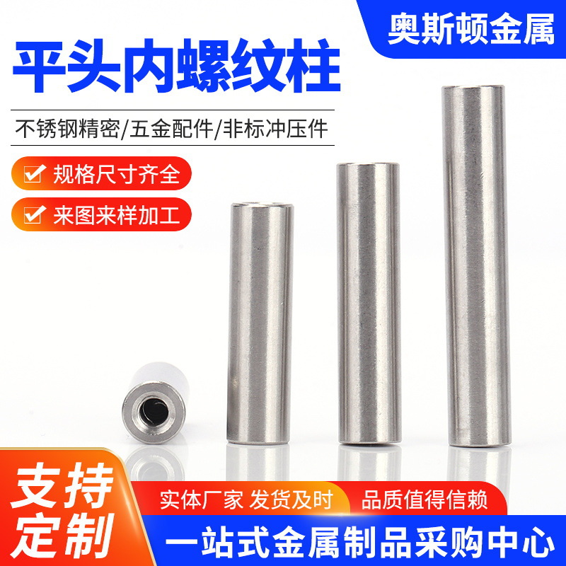 304ステンレスダブルヘッド内ねじ円柱ピン2ヘッド穴付き支持柱平ヘッド連結ロッドガイド柱M3-M10