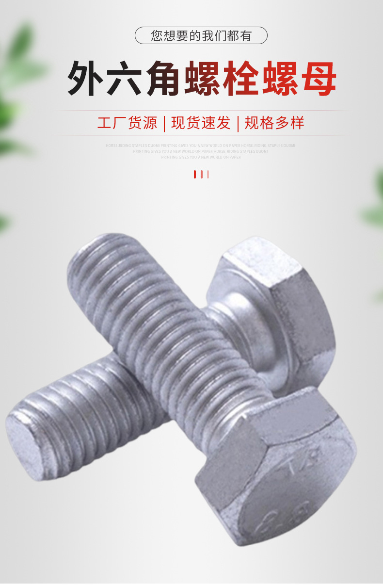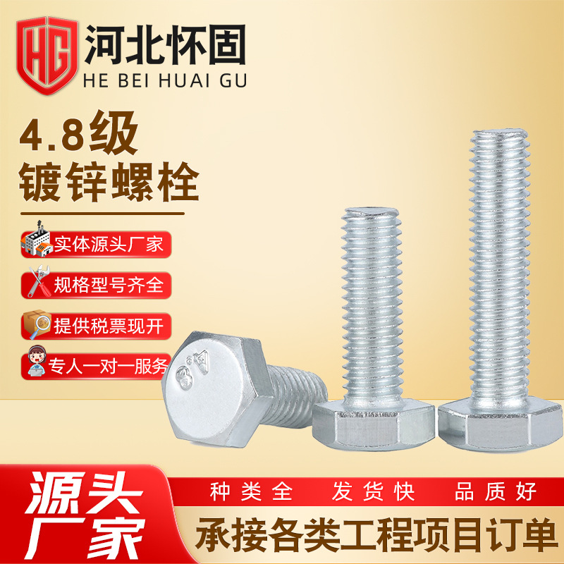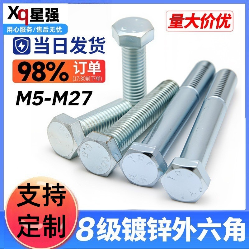 4.8级国标镀锌全牙半牙外六角螺钉螺丝螺栓大全M4M5M6M8M10M12M14