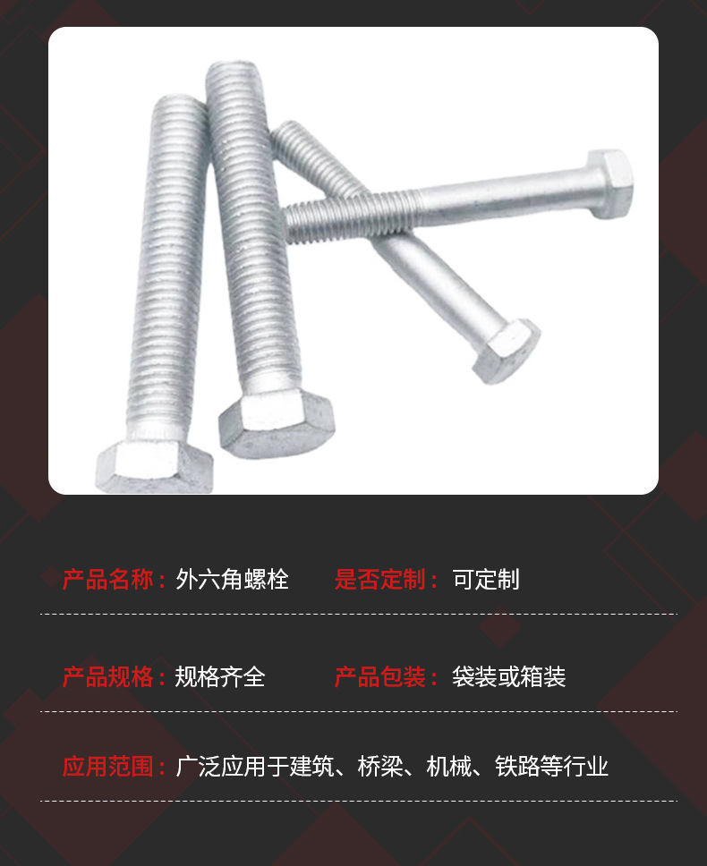 8.8級溶融亜鉛めっきボルト 太陽光発電用外六角ネジ m6-m36 ダクロメート溶融亜鉛めっき電力鉄塔ボルト