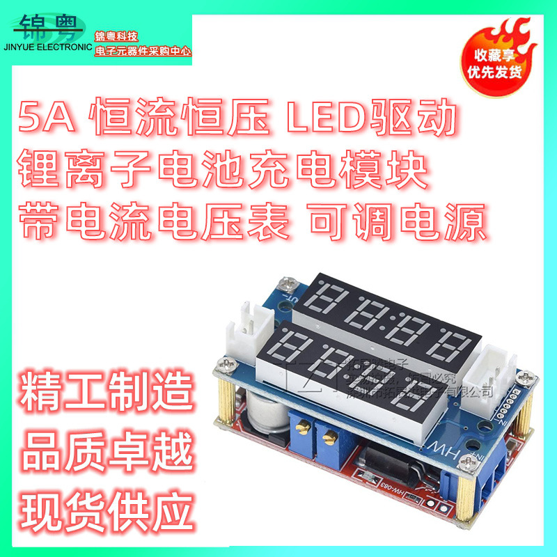 5A 恒流恒压 LED驱动 锂离子电池充电模块 带电流电压表 可调电源