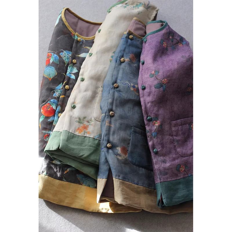 纯亚麻印花面料 60克羽绒棉 全棉里布