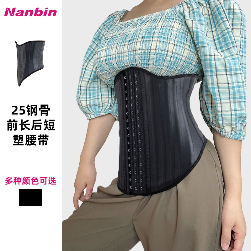 クロスボーダー欧米風曲線美肌レザーウエストニッパー、前長後短、バックル25スチールボーン入り、男女兼用ウエストシェイプベルト