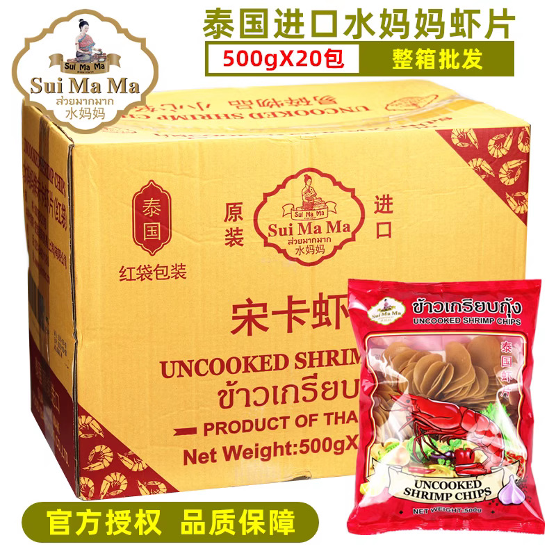タイ産水母宋卡エビチップス500g×20袋入り、業務用、自家製油揚げタイ風エビチップス