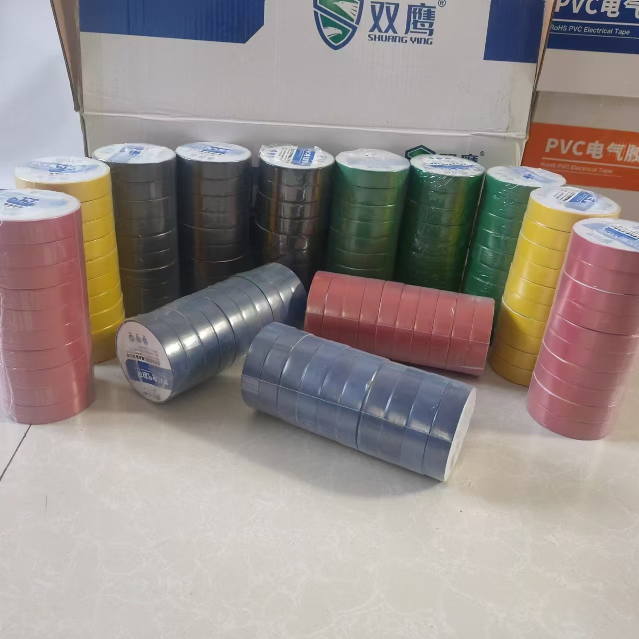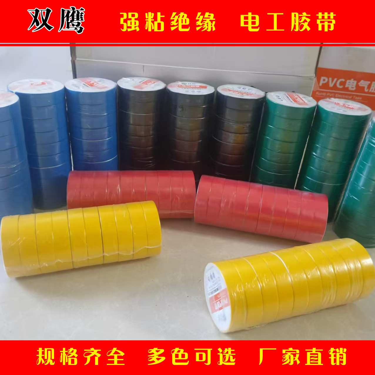 双鷹電気電線テープPVC超粘耐高温大巻きカラー絶縁テープ黒色青色赤色