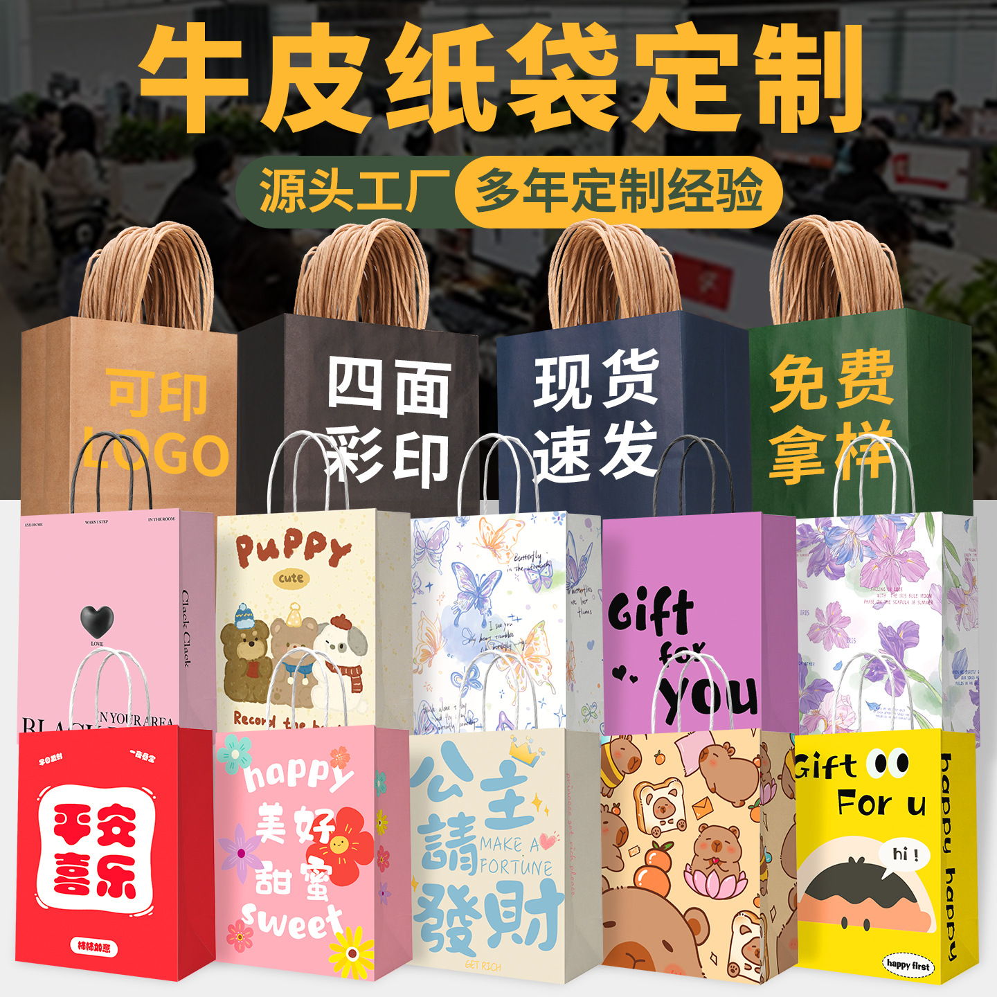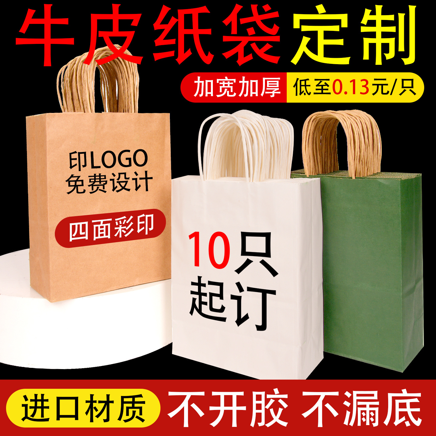 牛皮纸手提袋奶茶外卖打包袋礼品包装纸袋伴手礼袋批发定制印logo