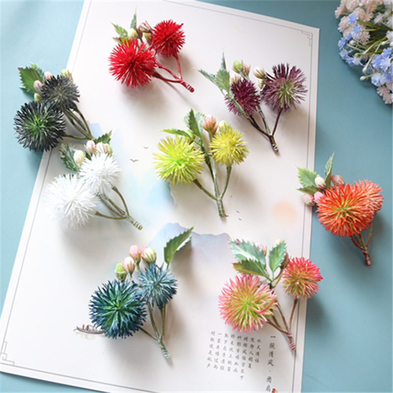 タンポポの造花5頭のネギのボールの花のボールの田園の風の家の装飾の結婚祝いの花の芸を撮影します。
