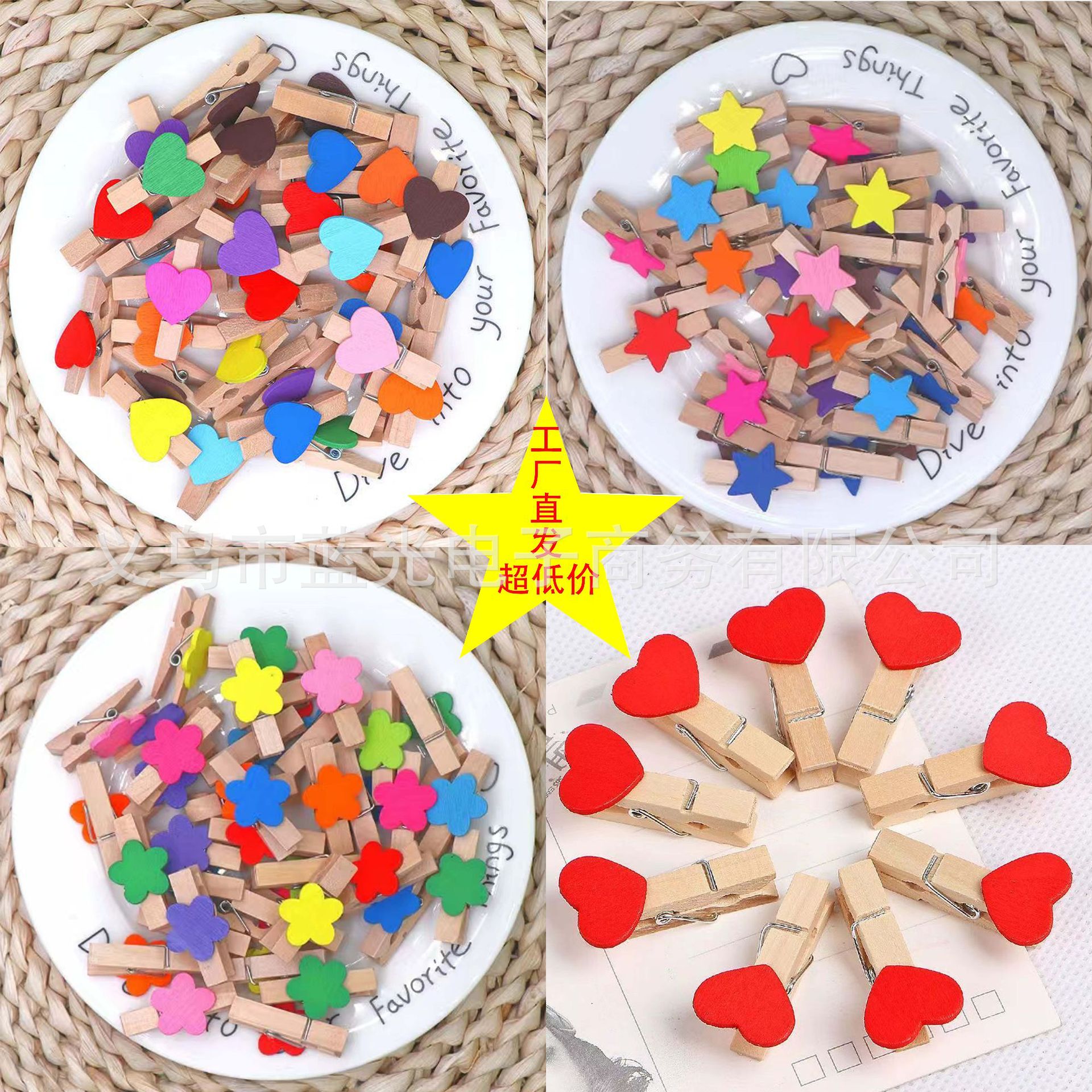 卸売り3.5/3cm愛木クリップカラー小クリップ木製アニメ星クリップ花写真小木クリップ
