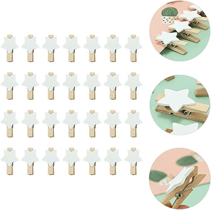 国境を越えたスポット卸売り3.5cm白い星の小さな木が木製の星の小さなクリップ写真を挟んで木のクリップを飾る