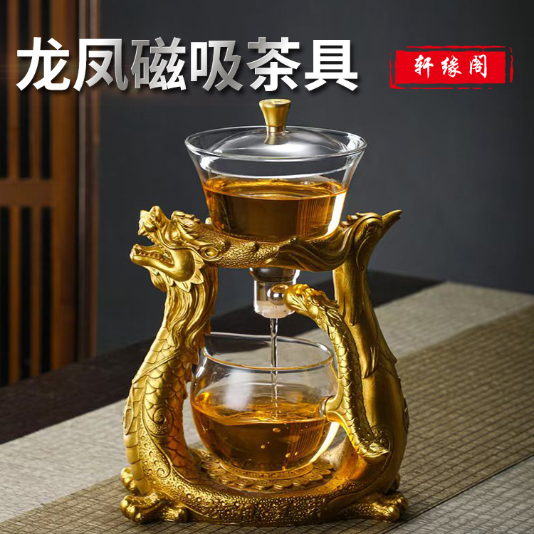 龍鳳呈祥宮灯ティーポット半自動ガラス怠け者茶器家庭用磁気ティーポット茶器セット