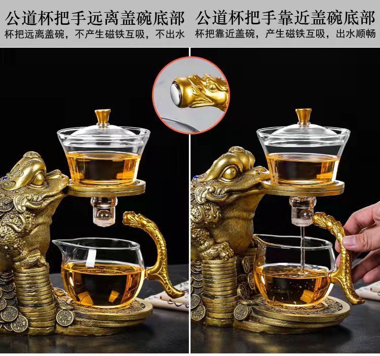 カラー 金ヒキガエル,磁気吸茶器,龍鳳泡茶器,ゴールデンドラゴン
