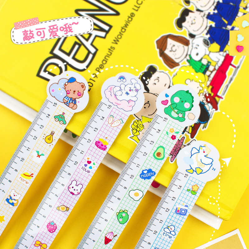 韓国ins文房具かわいいアニメ恐竜ベアーpvcプラスチック直尺学生測定尺広告尺製作