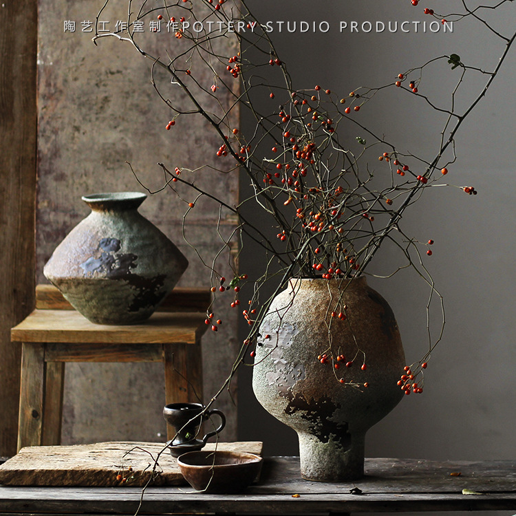 レトロ寂風会室内花瓶民宿置物ホテル家庭陶磁器花瓶禅意粗陶陶缶