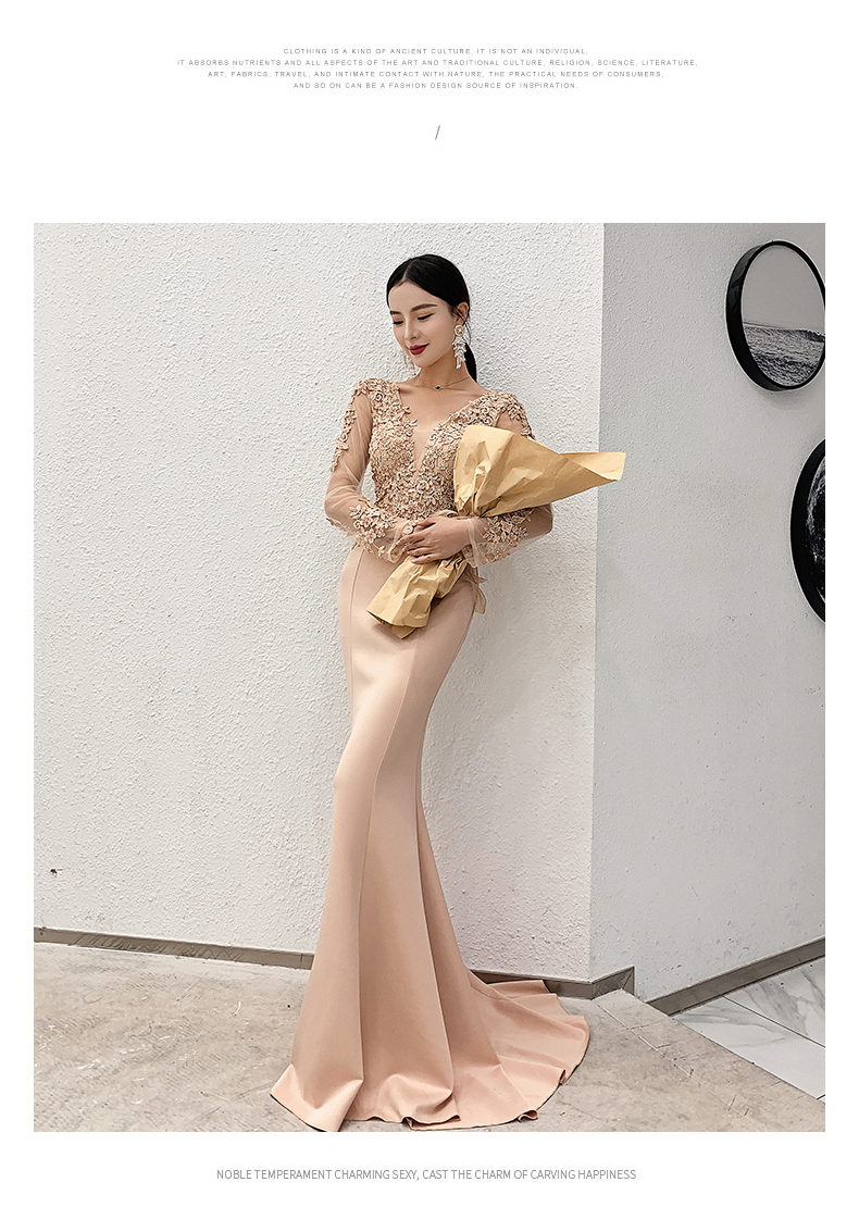 シャンパン色の年次総会のタキシードの女性2021新型の気質の宴会のドレスのスカートの軽い豪華な小さい大衆のハイエンドの魚の尾は身を修めることができます。