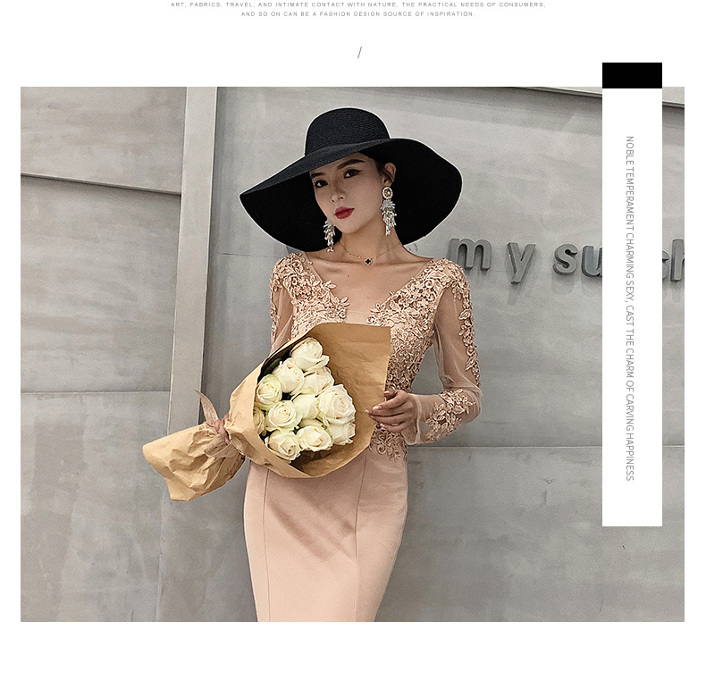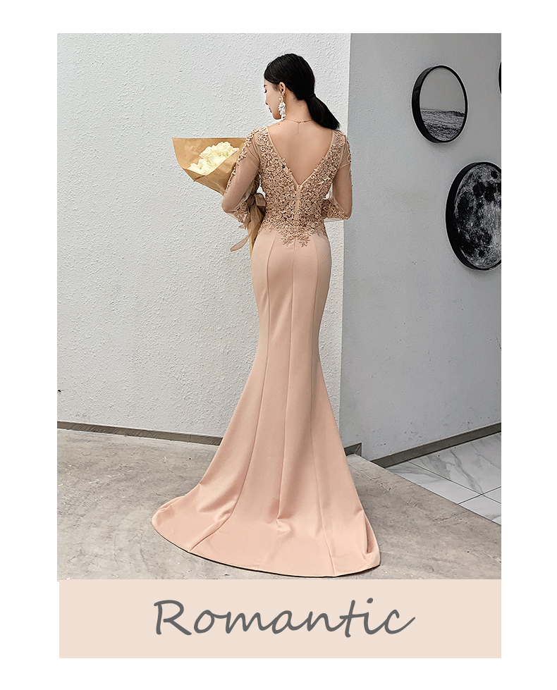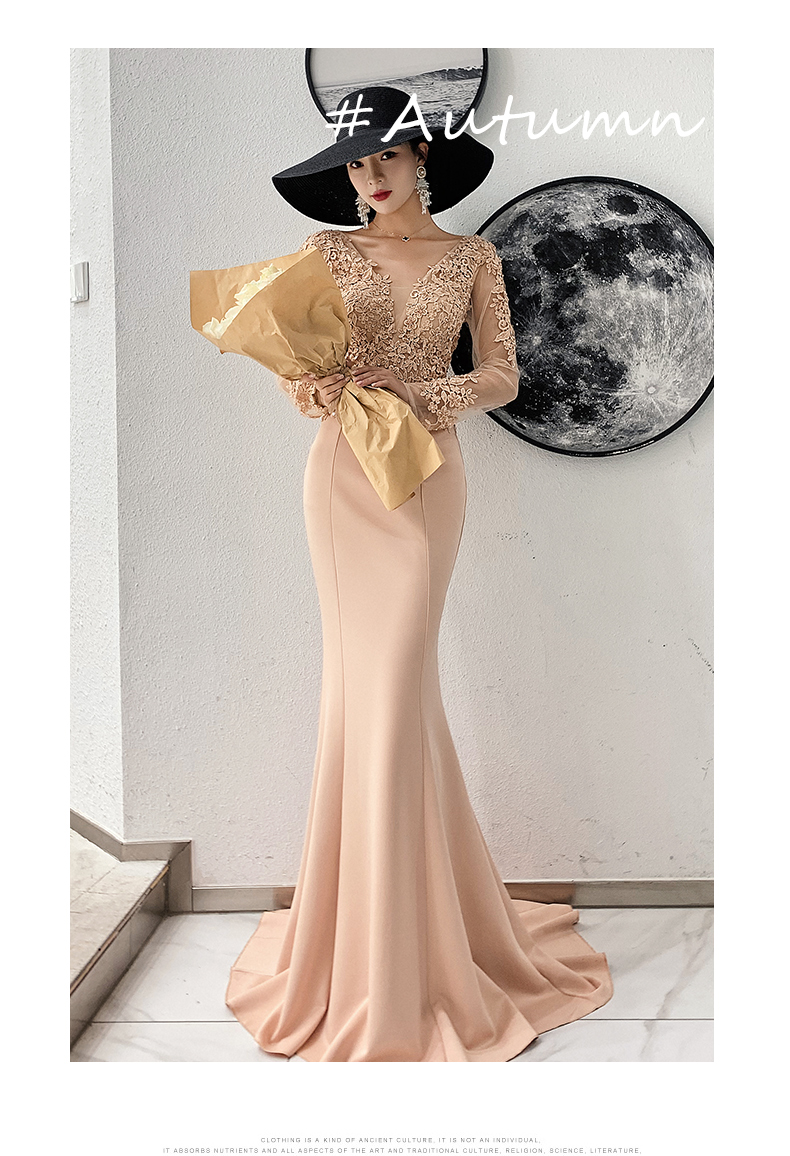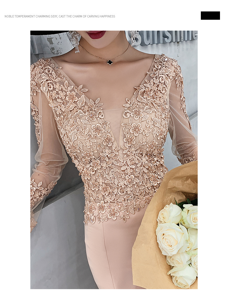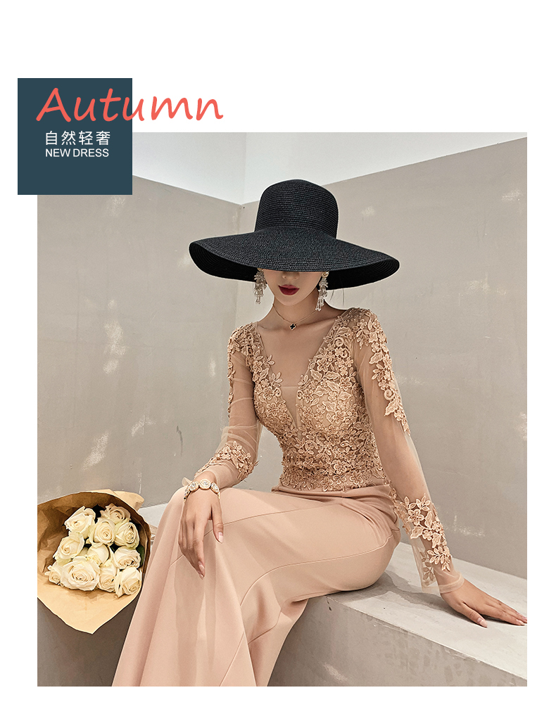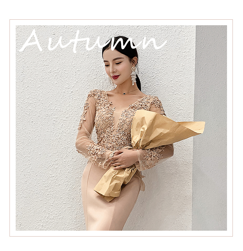 重工の夜のドレスの高級女性の新型2021の爆発的な宴会の気質の魚の尾の長袖の名媛の長いスカートの高級感の冬