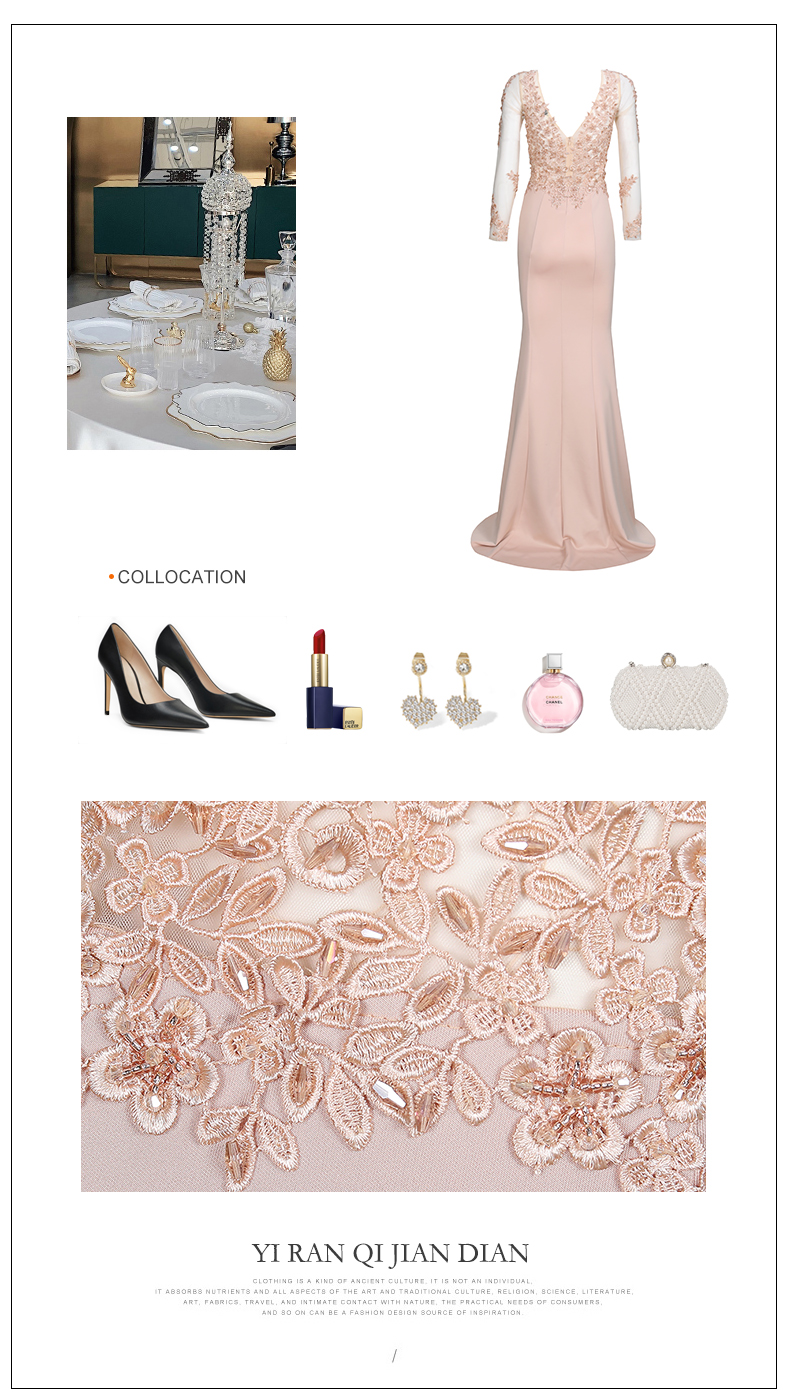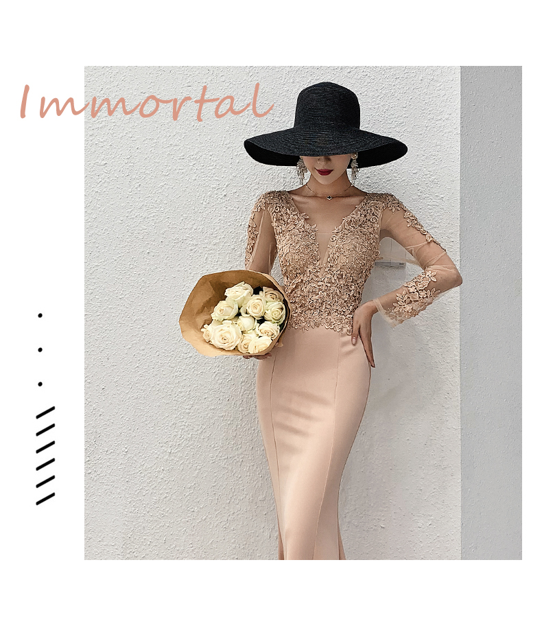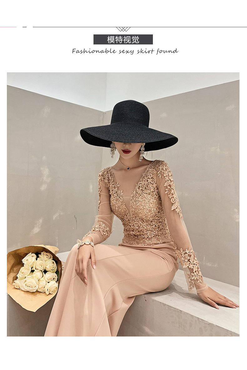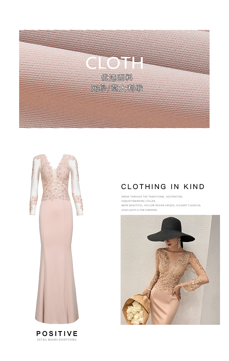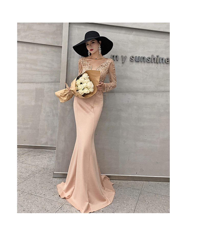 重工の夜のドレスの高級女性の新型2021の爆発的な宴会の気質の魚の尾の長袖の名媛の長いスカートの高級感の冬