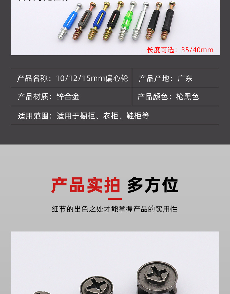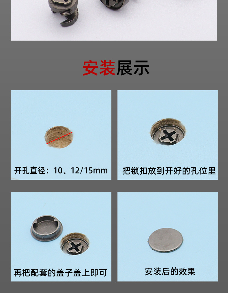 新型16-18板ガン黒三合一接続部品と金蓋開孔10/12/15センチ合金偏心輪