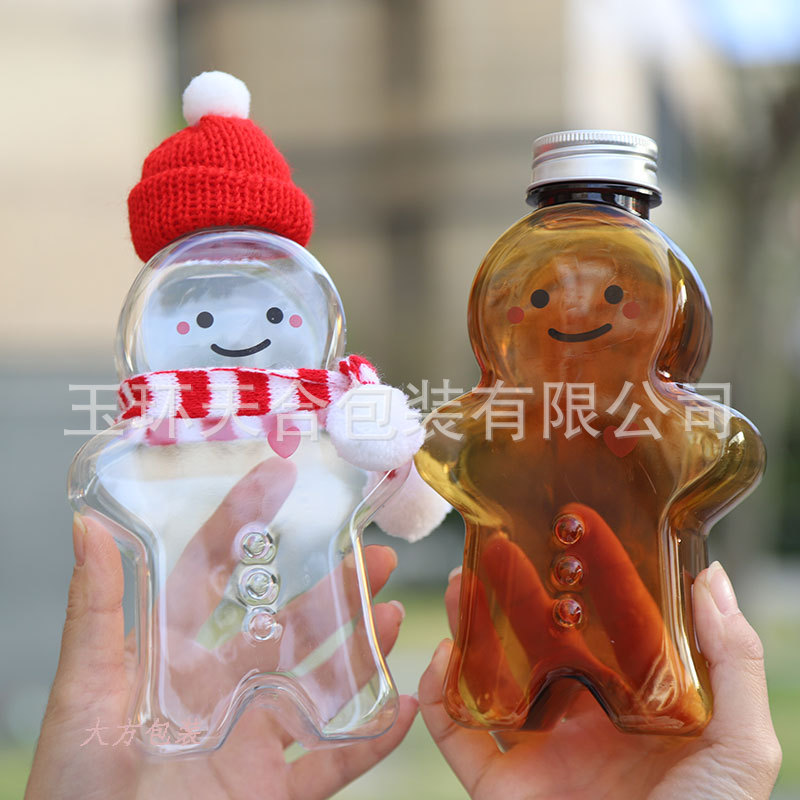 漫画ジンジャーブレッドマンミルクティーカップ特殊形状ペットボトル使い捨てジュース飲料ボトルクリスマスペットテイクアウトミルクティーボトル