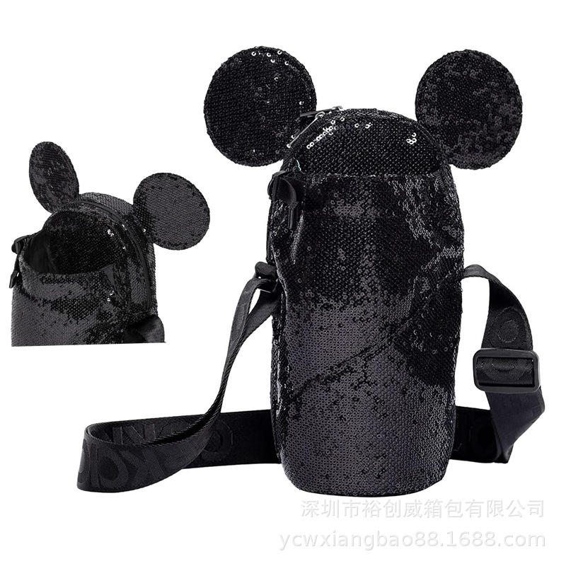 人気の黒スパンコールミッキー耳クロスボディウォーターボトルバッグ 16-40 ミリリットル断熱カップベーキングカップケトル保護カバー