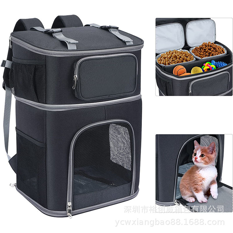 新しい二層猫バッグ、大容量、2匹の猫の外出用バックパック、ポータブル折りたたみ犬バッグ、ペットバッグ