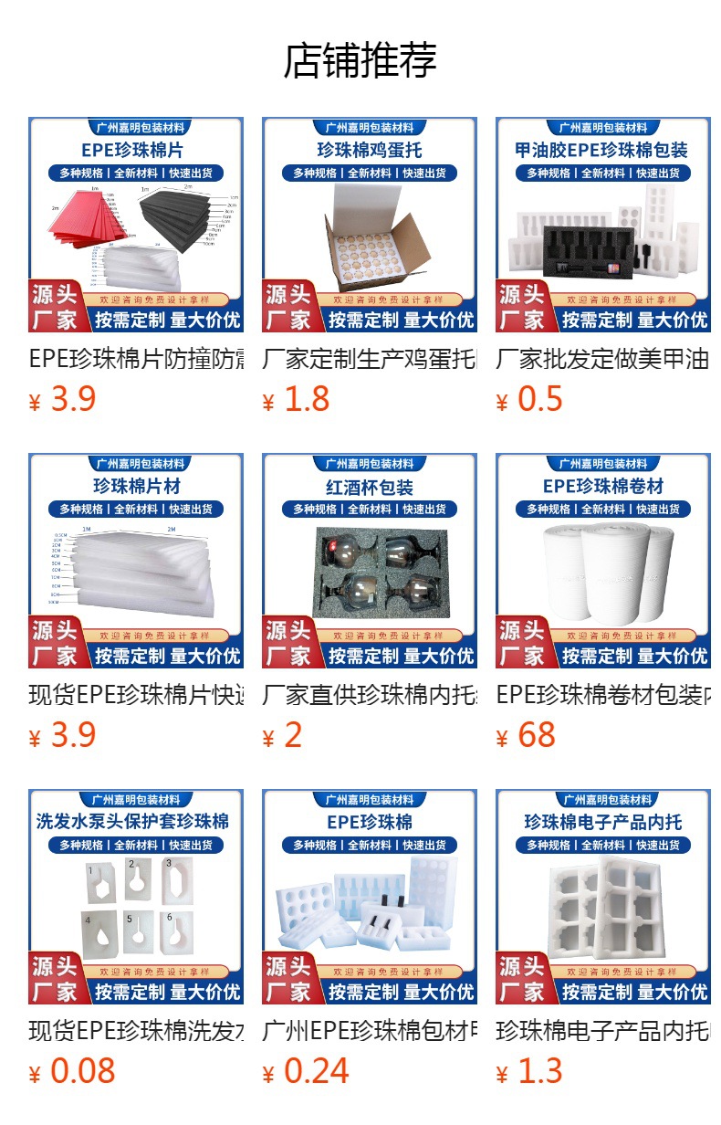 広州白雲メーカーカスタムepe真珠綿包装材料宅配物流包装綿シート真珠綿スライス